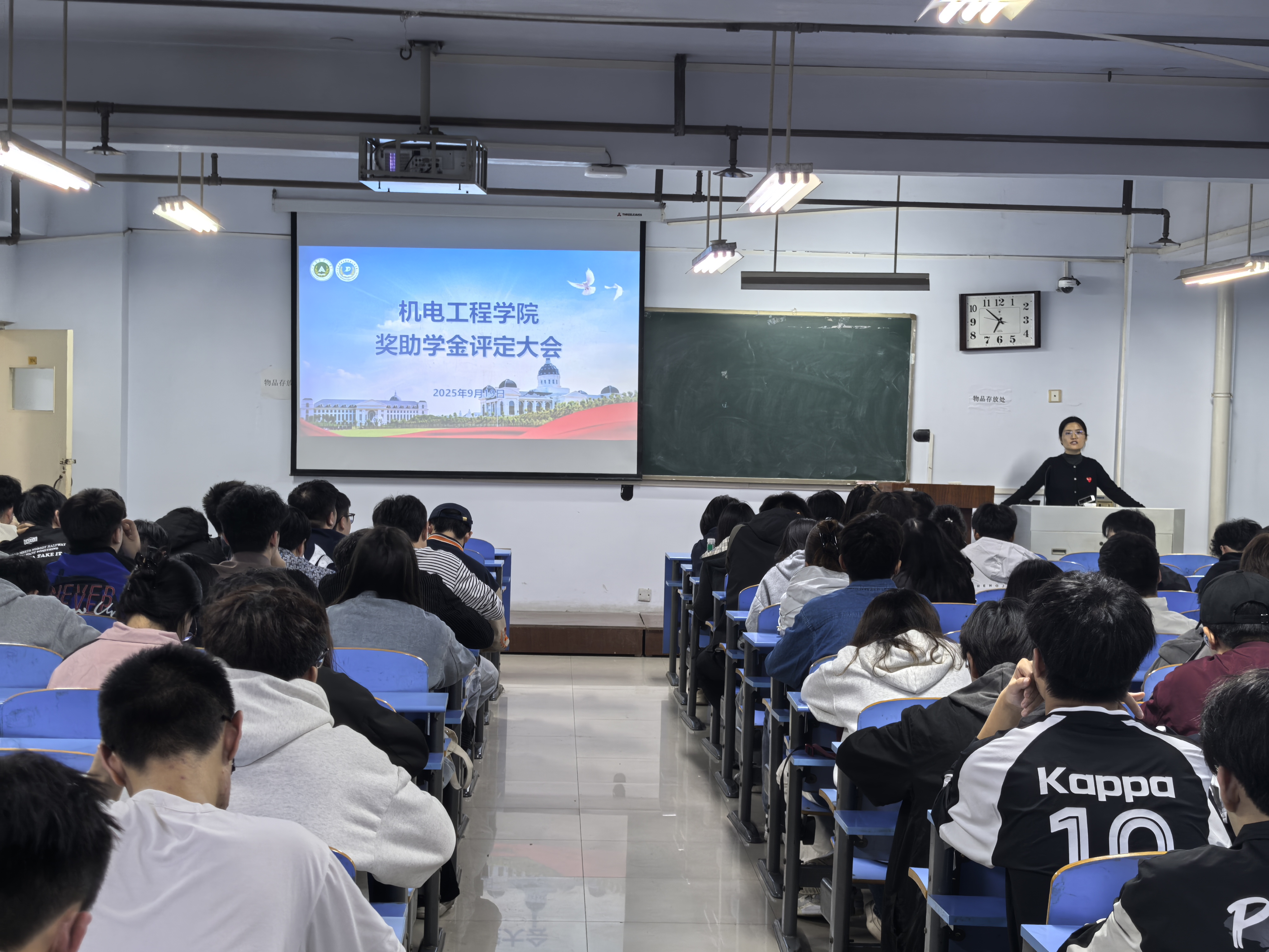 于文化路校区推广楼304教室召开2025年本科生国家奖助学金评定工作部署大会。学院团委副书记胡亭亭主持会议,全体本科生班级班长、团支书及25级新生助班参会,确保奖助学金评定政策与工作要求精准传达至各班级。