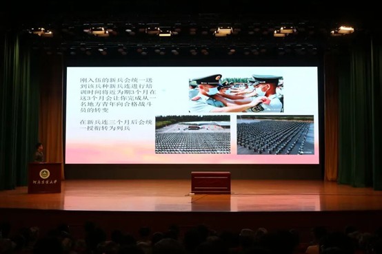 在文化路千人大礼堂举办征兵宣讲会。本次宣讲会由年级辅导员梁凯凯主持,通过退伍军人分享军旅经历与农大铁军成员对征兵政策讲解相结合的方式,为在场同学带来了一场内容丰富、情感真挚的宣讲会。