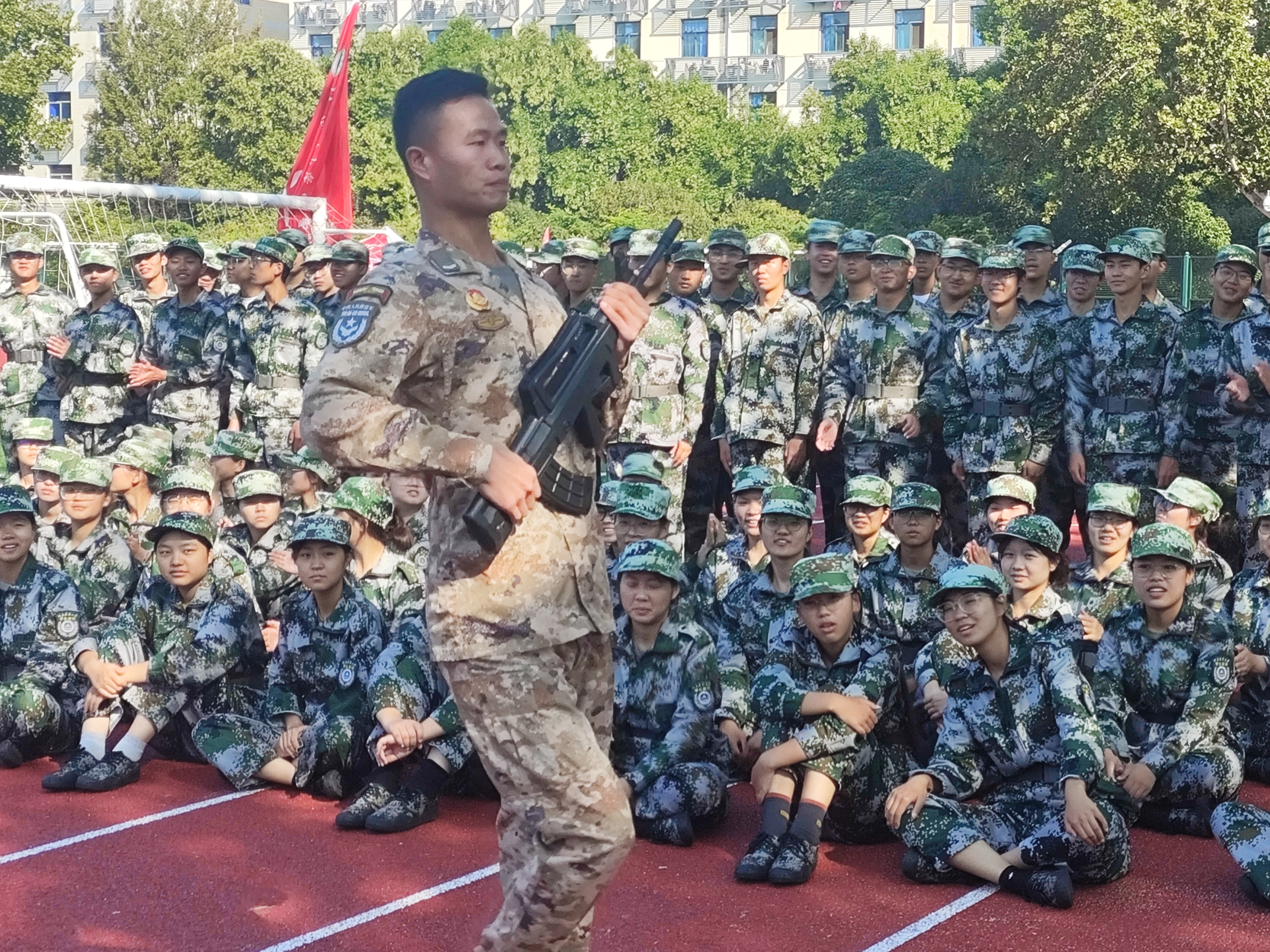 2025级新生迎来特殊一课。我校食品科学技术学院2020届毕业生、原中国人民解放军仪仗大队仪仗员、2025年“九三阅兵”预备役部队方队成员曹圣恩重返校园,以军旅动作展示和阅兵经历分享,为新生开展国防思政教育。