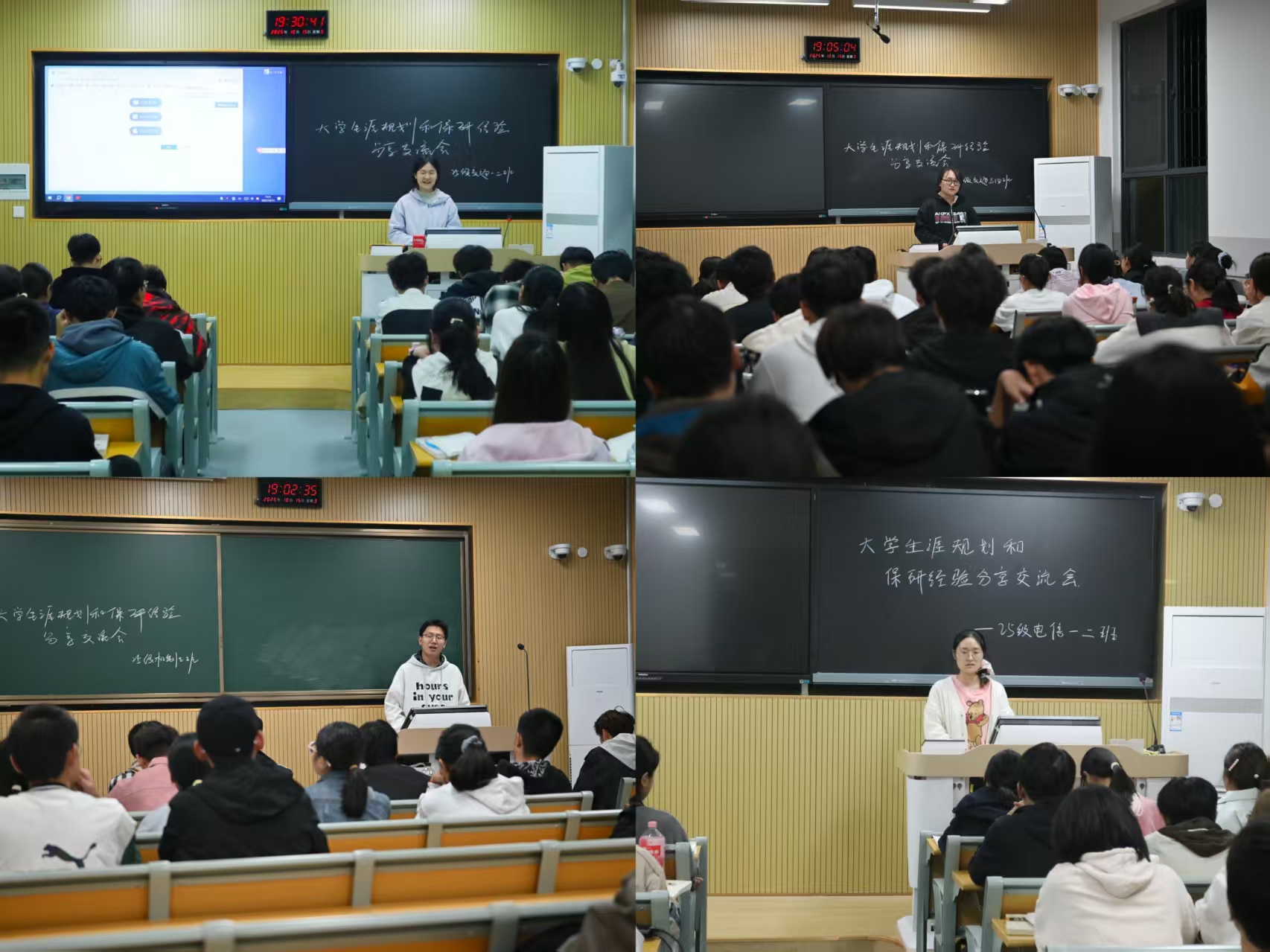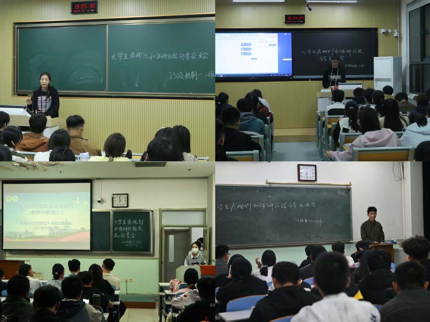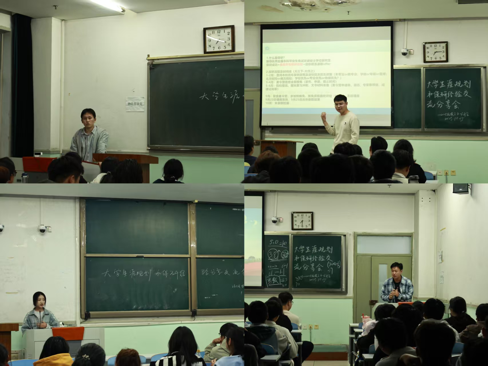 于文化路校区工程楼及3号楼同步举办大学生涯规划和保研经验分享交流会,特邀22级不同专业的保研学长学姐担任主讲人,分专业班级为25级学子带来一场干货满满的指导。