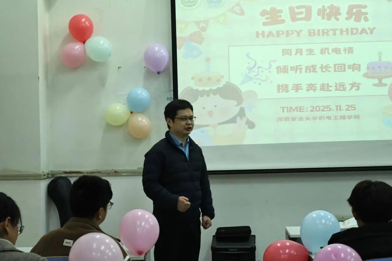 11月25日晚,色情小说网 在工程楼107教室为十一月生日的25级新生举办了一场温馨的生日会。院党委副书记宋晶、研究生辅导员李锦、年级辅导员梁凯凯,以及寿星班主任黄黎、王玲老师与寿星学子欢聚一堂,以成语诗词为纽带、以歌声祝福为献礼,共同赴约一场兼具文化韵味与暖心氛围的生日嘉年华。