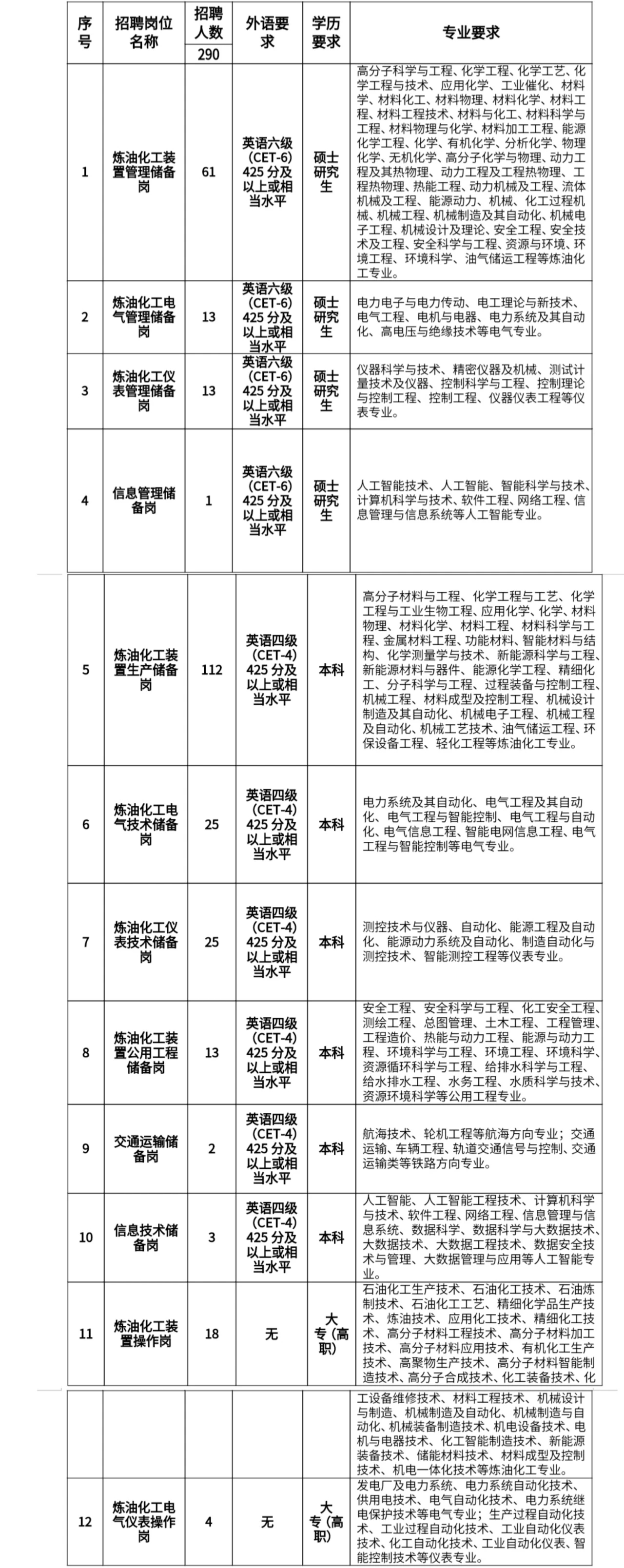需求专业及应聘流程详细要求以中国石化招聘网公布为准。